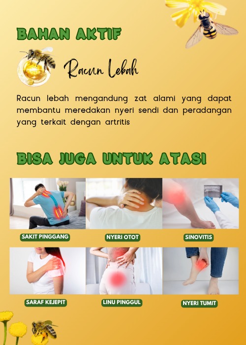 Racun Lebah (Bee Venom) Sudah dijelaskan dalam Al Quran dan diteliti banyak ilmuan dunia, dan terbukti bisa mengatasi Nyeri Persendian